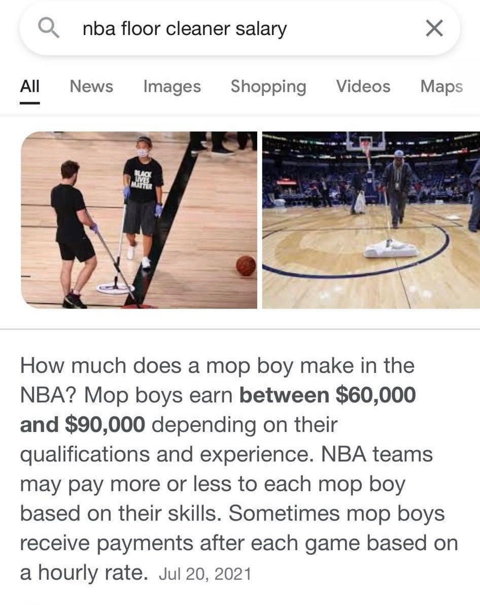 Game based on a hourly rate of floor sweepers. 2-year 30 million restructured contract. Anyone who knows how much do NBA floor sweepers make on average will have second thoughts about their present job.